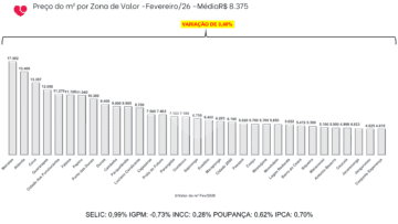 Um dos destaques do período é o desempenho do Meireles, que atingiu um marco histórico ao ultrapassar a barreira dos R$ 17 mil por metro quadrado, chegando a R$ 17.302/m² .