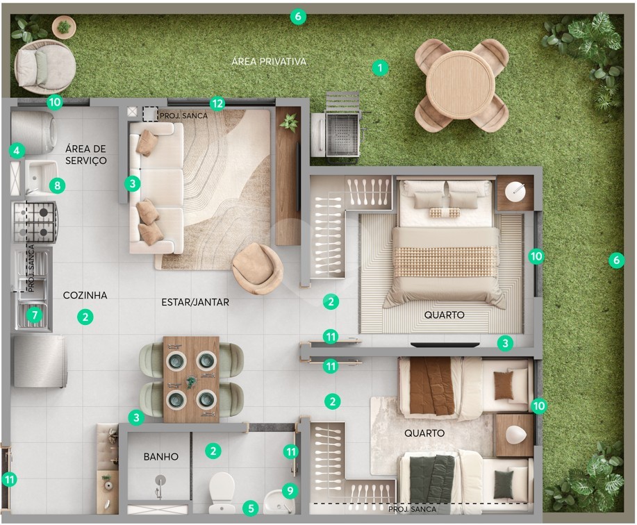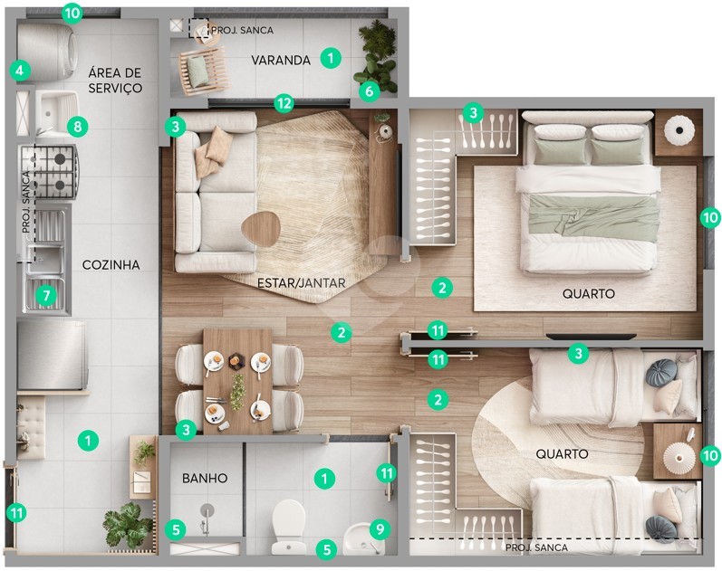 O Residencial Parque Marista é um condomínio moderno e completo, ideal para quem busca conforto, praticidade e qualidade de vida. Com 3 torres e infraestrutura bem planejada, oferece apartamentos de 38m² e 40m² com 2 quartos, planta funcional, ambientes integrados e 1 vaga de garagem.